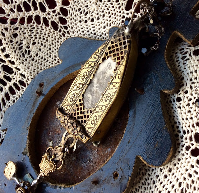 I would love for you to join me in creating a romantic pendant using antiqued images behind glass. We will design and securely solder reproduction embossed stampings and lacy filigree while trimming and manipulating to create gorgeous 3 - dimensional embellished regal works of art!